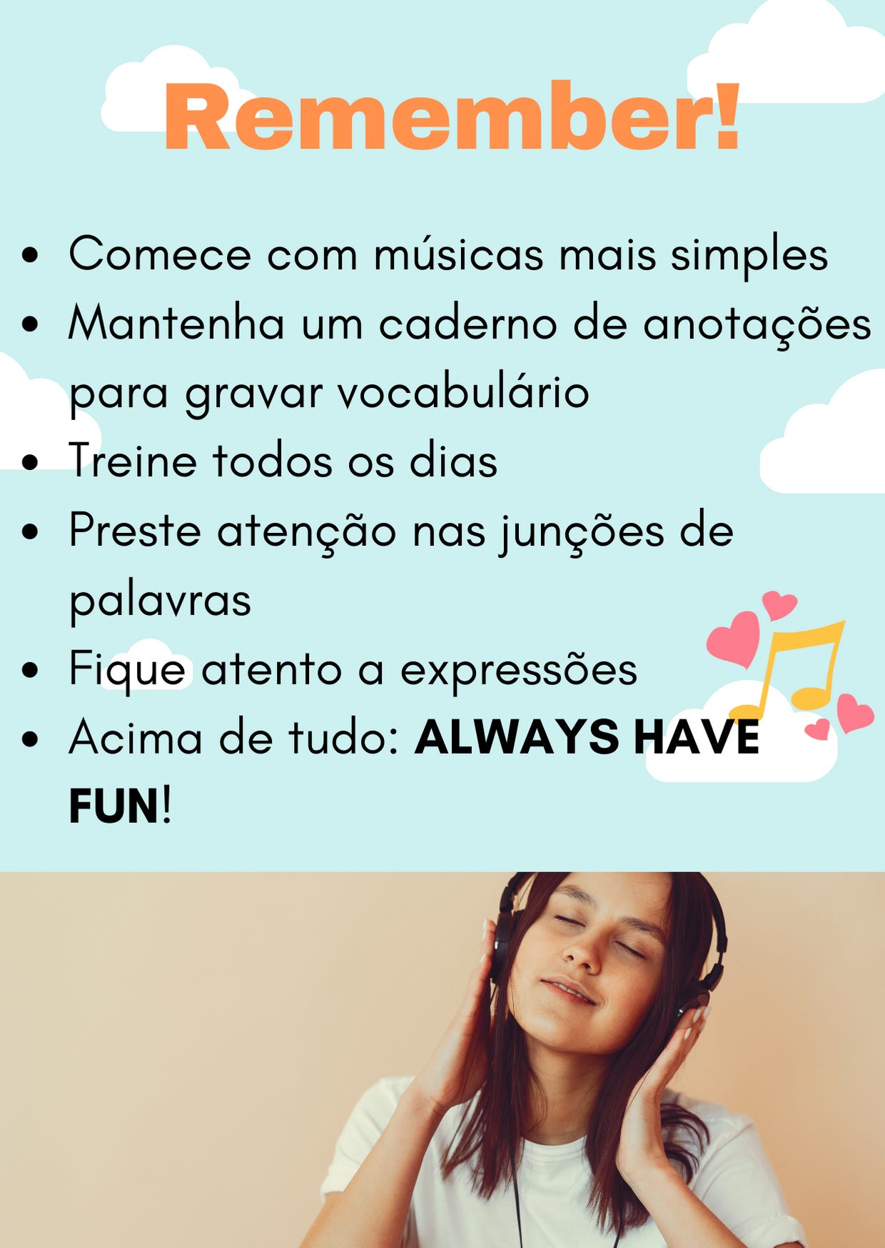 Por hora, vou deixar com vocês algumas dicas legais sobre como treinar seu listening - e consequentemente melhorar seu vocabulário - com músicas em inglês!